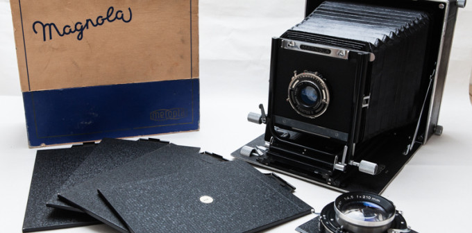 MAGNOLA je fotografický přístroj na desky a ploché filmy do velikosti 13 x 18 cm. MAGNOLA je sklopný fotografický přístroj důkladně a solidně provedený. Těleso přístroje a ostatní hlavní detaily jsou zhotoveny z lehkého kovu. Vnější plochy přístroje jsou polepeny koží, ostatní části jsou chráněny vypalovacím ...